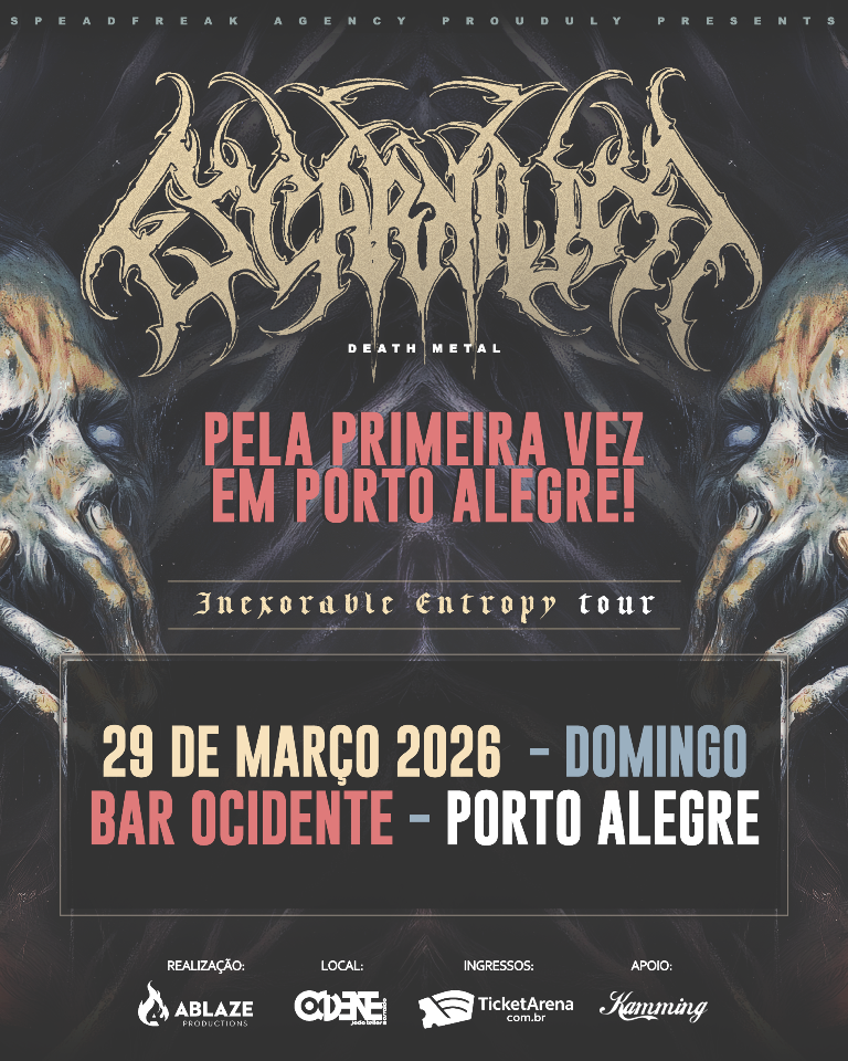 Em Março de 2026, o Escarnium se apresenta pela primeira vez em Porto Alegre! O show acontece dia 29/03, domingo, no Bar Ocidente.